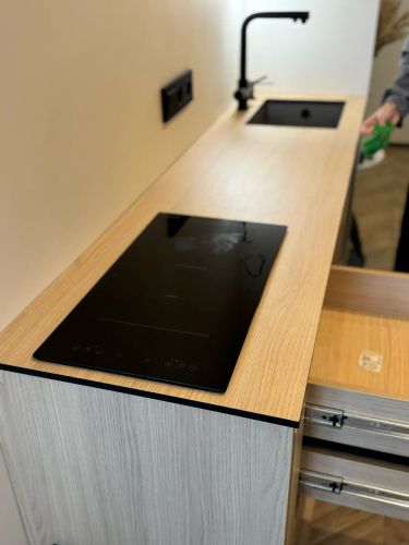 Установим измельчитель, подключим к канализации и электричеству. Вырежем отверстие и установим кнопку измельчителя на раковине или столешнице. Работа займёт 1–2 часа. Возможно, будем отключать воду и свет.