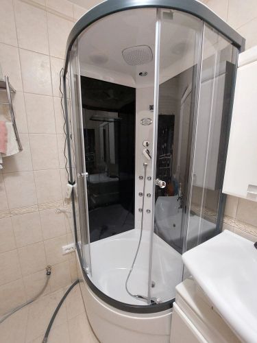 Соберём и установим кабину, обработаем герметиком, подключим смеситель и душ. Работу выполним за 2–4 часа. Будем перекрывать воду.